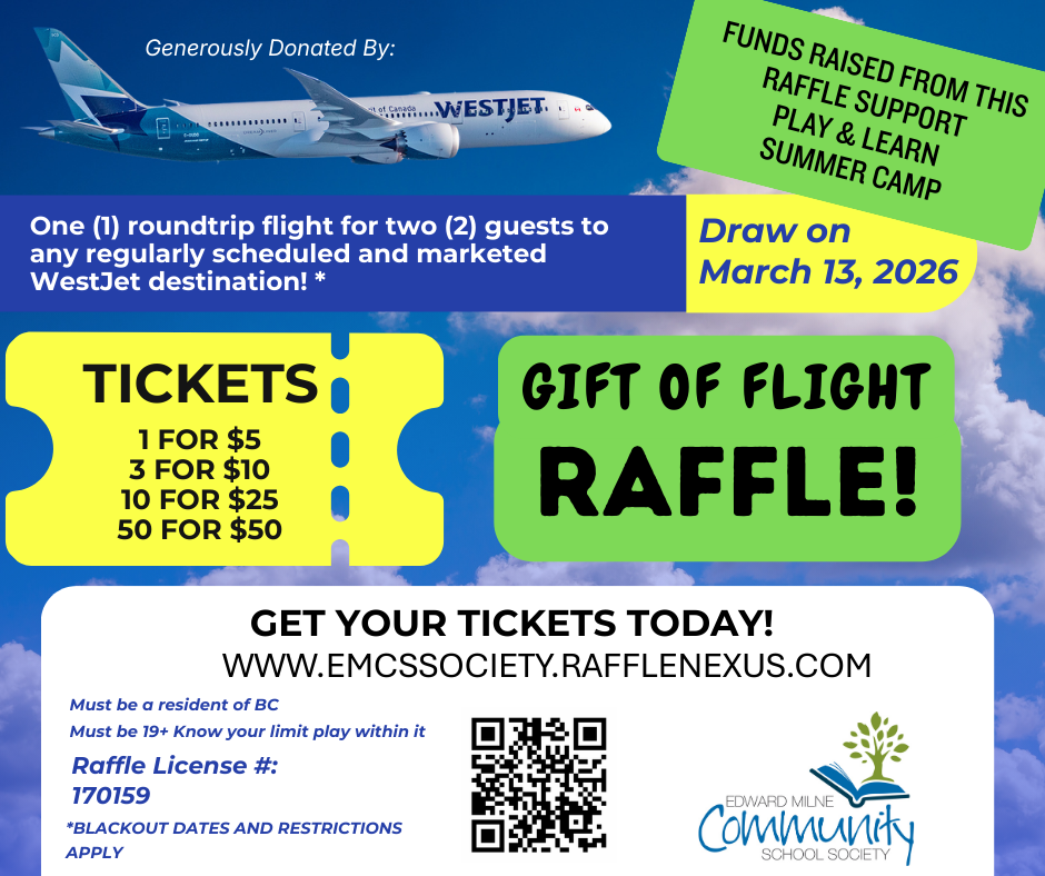 • Raffle information for Sooke Play and Learn Camp -prize- Westjet Flights